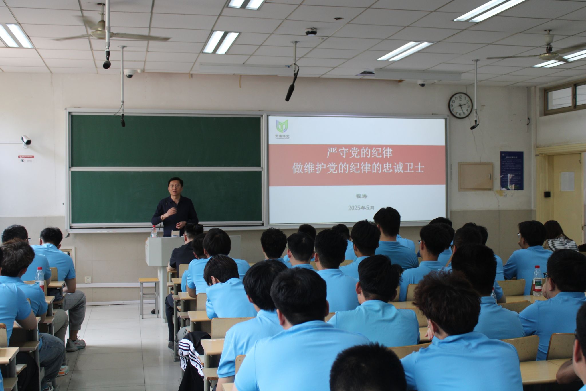 程涛以“什么是党的纪律”引入,概述了党纪与国法的辩证关系,梳理了党的百年纪律建设的历史脉络和基本经验,从“党的集中统一领导”“全面覆盖”“权威高效”三个要点聚焦解读了新时代以来国家监督体系的健全和完善,以大量违纪违法案例为基础,以党的六大纪律为主线,聚焦明纪律规矩,守法律底线,强化纪律规矩不仅是约束更是保护的理念。程涛说到,作为青年党员,一是要以敬畏之心为“压舱石”,常思贪欲之害、常怀律己之心,让不敢腐的戒惧意识融入血脉;二是要以制度之网为“防护盾”,严守纪律规矩、规范权力运行,让不能腐的刚性约束落地生根;三是要以思想之舵为“指路灯”,补足精神之钙、厚植为民情怀,让不想腐的自觉信念铸入灵魂。