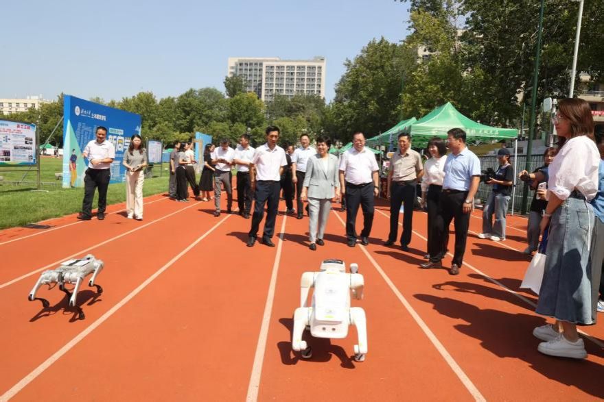 学院师生自助研发“智能机器狗--小白”也来到了迎新现场,踢球、转圈、握手,灵活的动作吸引了学生和家长上前互动。“小白”的精彩表现,激发了新生对专业学习的兴趣和热情,也让新生家长看到了机械学院在科技创新方面的实力和在人才培养方面的成果,对学院的教育质量和学生的发展前景充满了信心。