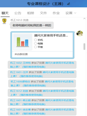 图2 王潍老师讲座和专业课程设计中进行的在线投票