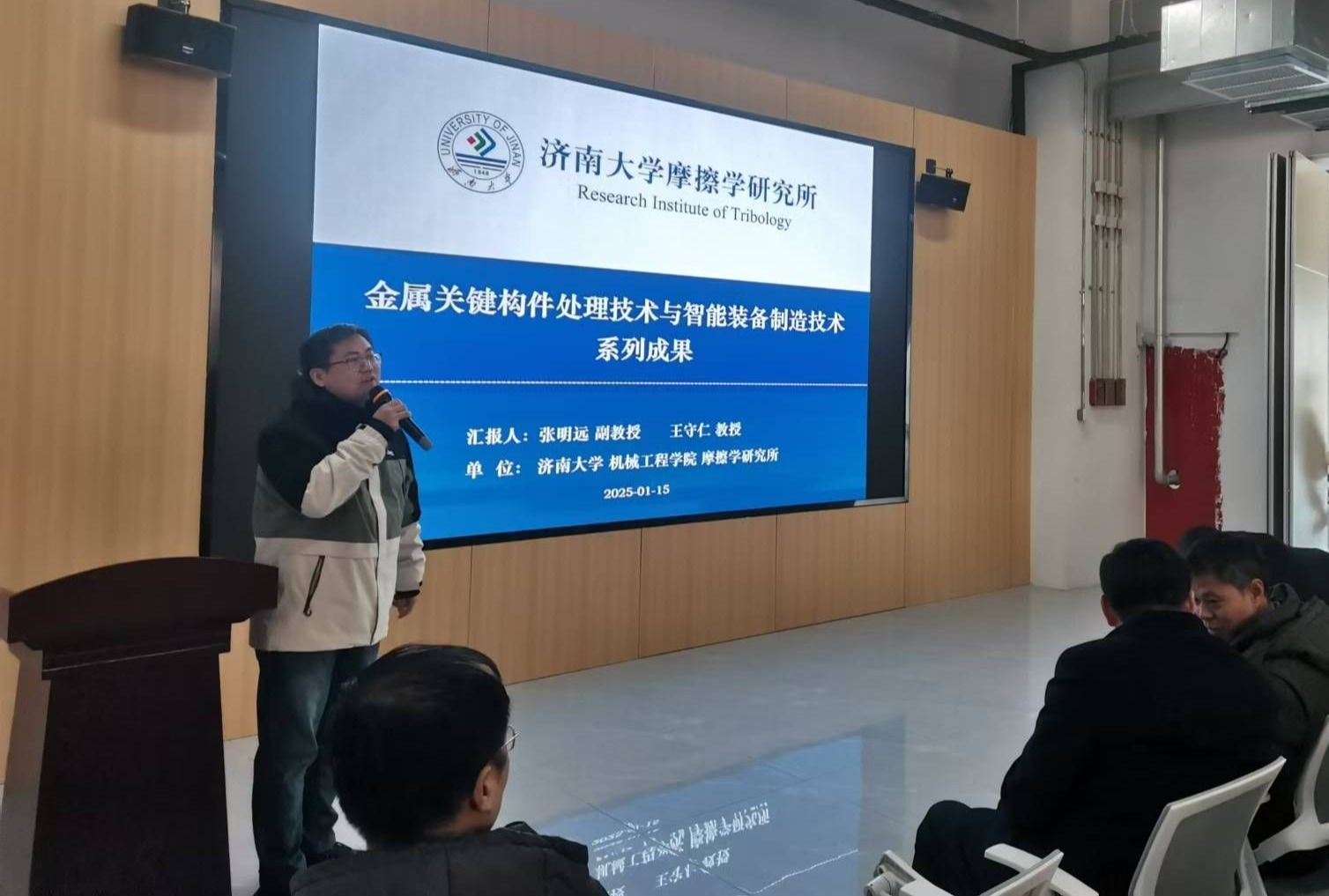 2025年1月15日,best365官网参加了临沂科技大市场成果对接直通车系列活动——best365官网中文版登录科技成果专场对接会。市科技创新服务中心主任殷洪涛,best365官网中文版登录科技成果转化办公室副主任张志国,best365官网中文版登录副院长张辉,山东沂蒙人才数字科技有限公司董事长田明宝、临沂市山科科创有限公司总经理邵青峰出席,县区科技局有关同志,市内机械加工、智能制造等领域重点企业代表、技术经纪人等共70余人参加。
